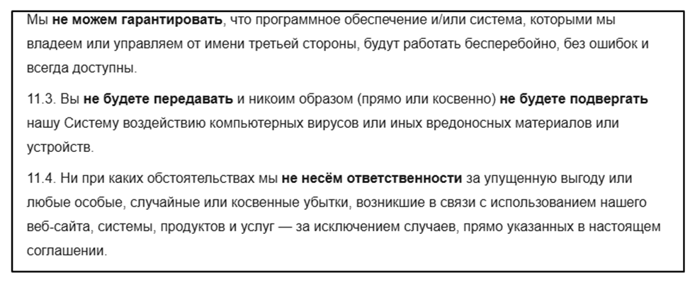 На сайте Q S Ag нет прозрачности. Отсутствует детальная информация о компании: нет сведений об организации, коллективе, руководителях и партнерах. Администрация сервиса не берет ответственность за технические проблемы. В ее обязанности не входит поддержание работоспособности площадки. Это значит, что трейдеры не могут рассчитывать на финансовые компенсации в случае убытков.