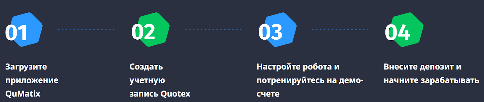 «Квубот» поддерживает функцию автоматической торговли. Для этого клиент должен скачать приложение на смартфон, зарегистрироваться и настроить торгового бота.
