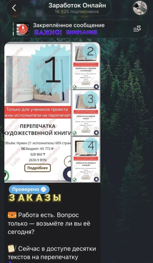 Владельцы телеграм-канала Rabota S Tekst предоставляют пользователям возможность подработать удаленно. Работа заключается в перепечатывании текстов. Судя по публикациям «Заработок Онлайн», заказы есть всегда и оплата за их выполнение очень достойная.
