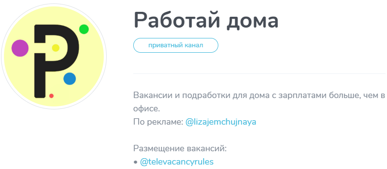 Канал Работай Дома запустили в 2019 году. Его владельцы неизвестны, а проект якобы является агрегатором вакансий для фрилансеров. По заявлениям автора канала, вакансии поступают напрямую от работодателей, а не берутся с других ресурсов.