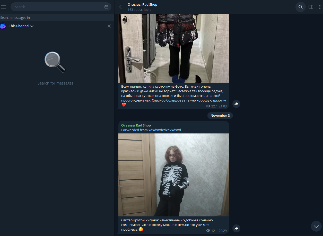 В сети по-разному отзываются о проекте. На канале Raad Otzivi покупатели пишут о быстрой доставке, качественных материалах и насыщенном цвете товара. Тем не менее важно понимать, что сообщения размещены внутри дочернего канала Raad Shop, поэтому проверить, обман это или нет – невозможно.