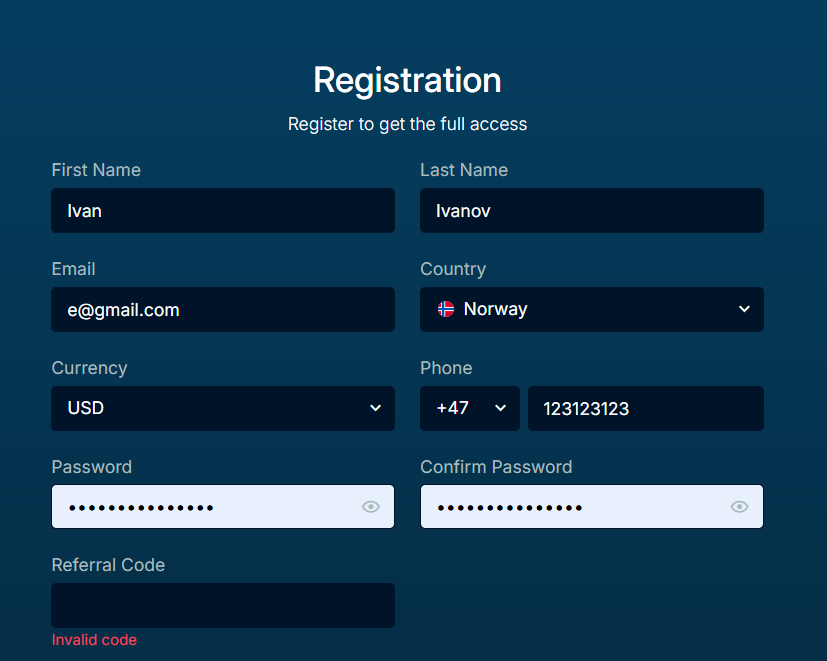 Для регистрации в Raliplen не нужны дополнительные документы, но требуется реферальный код.