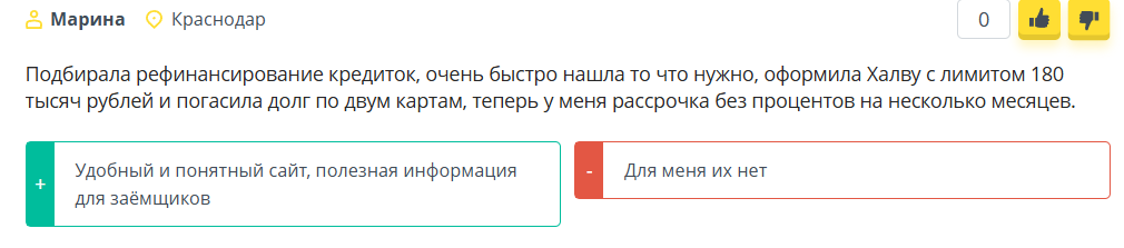 Следующий пользователь благодарен создателям площадки за помощь с оформлением кредитных карт с рассрочкой без процентов.