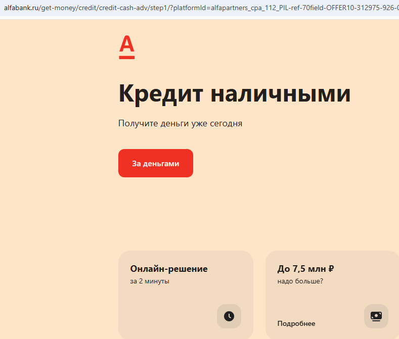 Нажав на логотип выбранного банка, клиент сразу попадает на его официальный сайт. Обращает на себя внимание то, что переход с платежной системы Rapida происходит по реферальной ссылке. Очевидно, эта платформа получает деньги от финансовых организаций за то, что приводит им новых заемщиков. Схема заработка системы «Рапида Online» прозрачна и не вызывает вопросов.