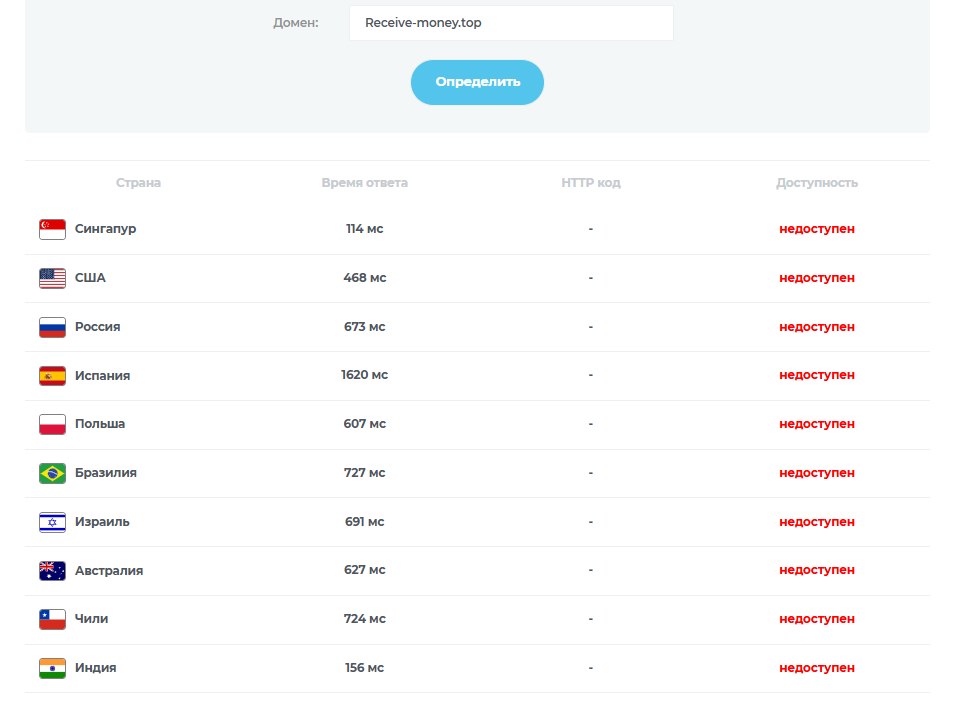 По данным мониторингов BestChange и Exnode, похожий домен Receive Money biz фигурирует в списках, но именно этот криптообменник (top) вызывает вопросы. Домен был зарегистрирован недавно, без прозрачной истории WHOIS, что типично для сомнительных проектов. В настоящее время ссылка, по которой можно было перейти на сайт ресурса, нерабочая.