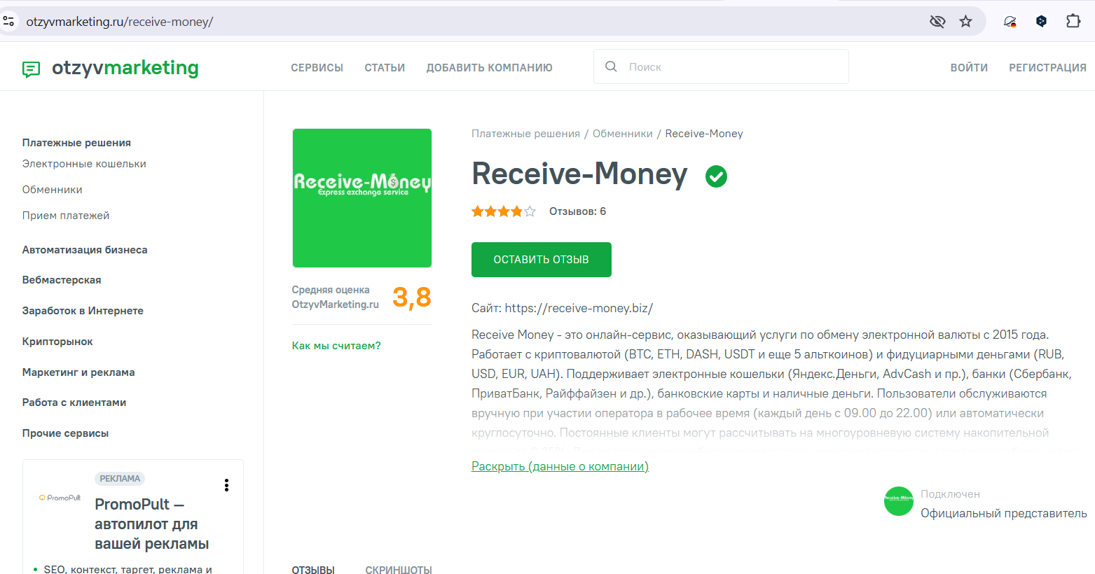 Обзор Receive Money: отзывы пользователей о криптообменнике, принцип работы Ресив Мани