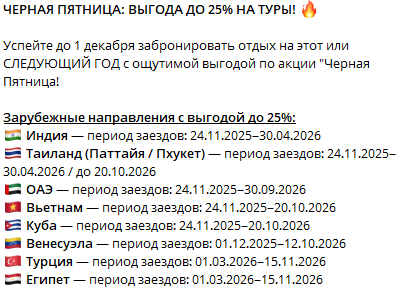 В одном из постов компания предлагает подписчикам приобрести туры в Индию, Таиланд, Египет и другие страны. В блоге указаны даты, в которые можно отправиться в путешествие. Подобная конкретика внушает доверие.