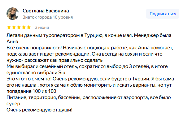 Один из путешественников в своем отзыве о Regnum Travel рассказывает, что менеджер компании давал необходимые подсказки и рекомендации. Благодаря этому отдых был очень удачным.