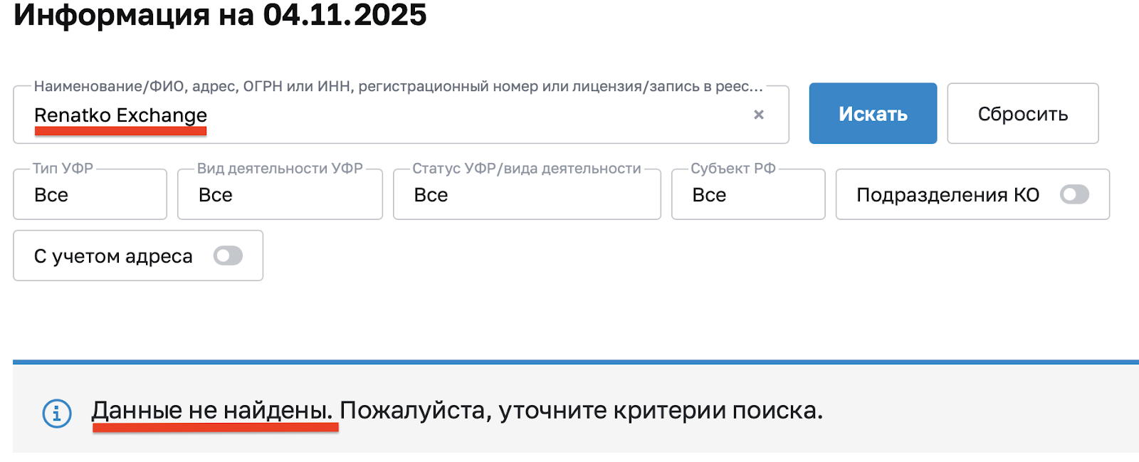 Проверка легальности Renatko Exchange