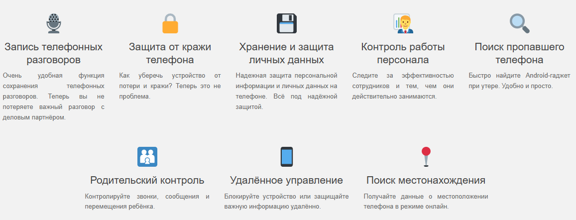 - слишком “неоднородный” функционал, от слежки до записей на диктофон и защиты от кражи;