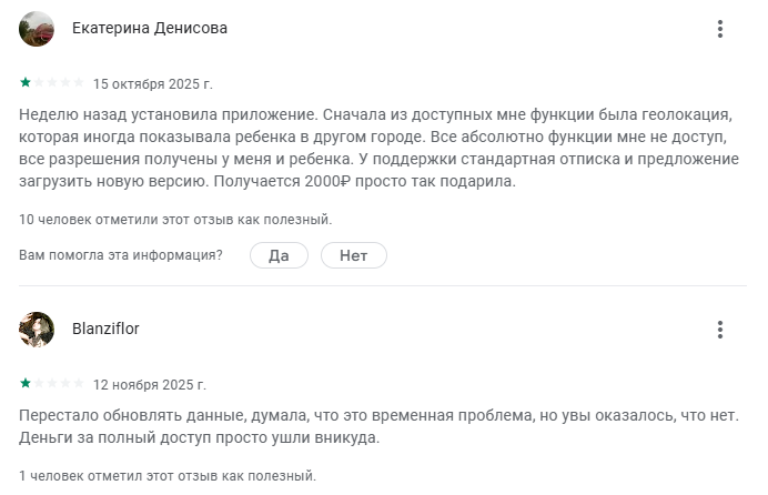 Общий рейтинг проекта – 3,2. Почти все последние отзывы о программе Reptilicus негативные. Люди в комментариях сообщают, что оплатили подписку, предоставили доступ в настройках и так и не получили доступ ни к одной из функций. Лишь иногда работало отслеживание геолокации, хотя для этого есть много более популярных и надежных сервисов.