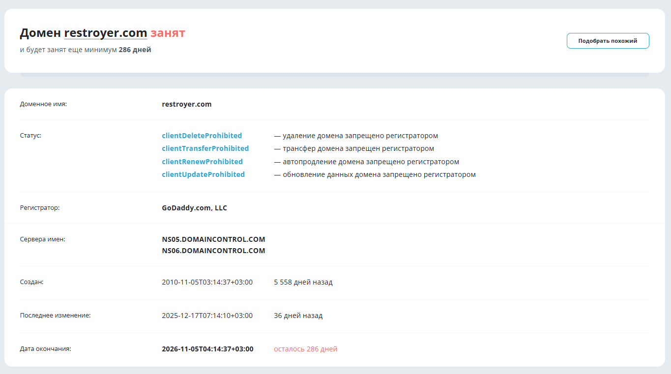 В середине января 2026 года сайт Restroyer com не открывается, поскольку система выдает «Ошибку 404», что говорит об отключении портала со стороны сервера.