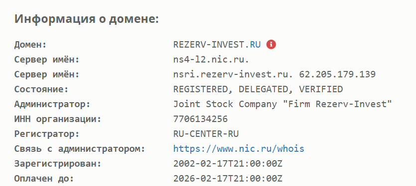 Резерв-Инвест: сайт запустили за 8 месяцев до регистрации компании, а директором числится некий Русских Елизавета Владимировна. Похоже на очередной развод.