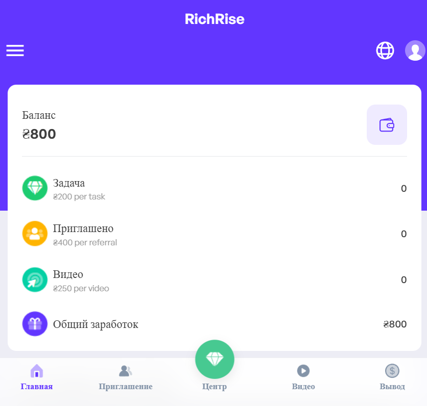 RichRise — очередной лохотрон: обещают лёгкий заработок без навыков, а в итоге требуют деньги за «премиум» и комиссии.