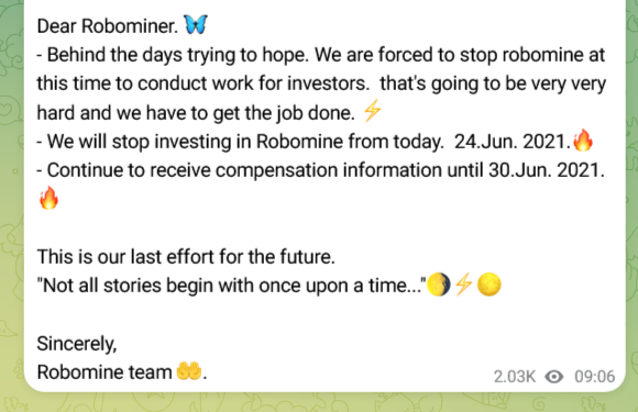 Последний пост здесь был опубликован в июне 2021 года, с тех пор сообщество заброшено. В нем было указано, что криптокошелек перестает работать с 24 июня 2021 года, то есть, за несколько лет до даты запуска сайта проекта RoboMine Wallet.