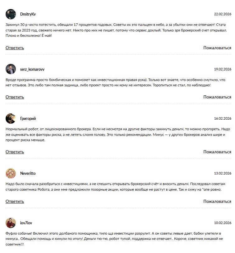 Многие клиенты столкнулись с тем, что алгоритм плохо адаптирован к резким рыночным шокам. Консервативные портфели, которые должны защищать капитал, по факту часто показывают доходность ниже официальной инфляции, что пользователи расценивают как неэффективное управление.