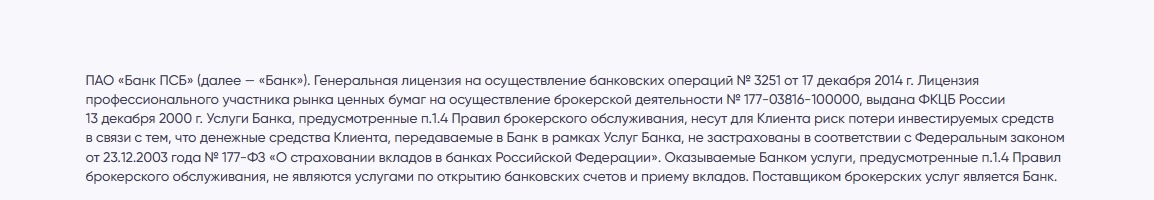 ПСБ обладает официальной лицензией на осуществление деятельности инвестиционного советника. Это означает, что банк включен в единый реестр Банка России и обязан соблюдать стандарты консультирования, установленные законом.