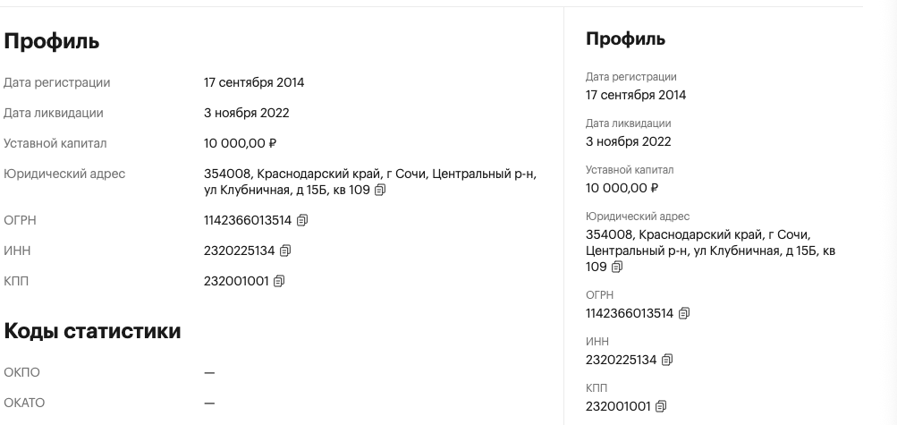 В информации о компании на этом ресурсе также сказано, что в 2014 году проект прошел слияние с компанией Роботизированные системы. Правда ИНН компании не указан ни в этом рекламном сообщении, ни на сайте платформы. Если искать просто компанию Роботизированные системы из Сочи, то можно найти организацию, которая была создана в 2014 году, а ликвидирована в 2022 году: