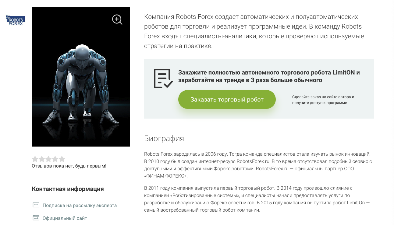Основная информация о сервисе RobotsForex