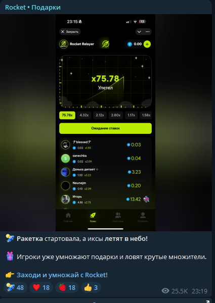 Rocket Gift — очередной скам, замаскированный под краш-игру в Телеграме. Накрученные подписчики, отключенные комментарии и анонимные создатели — классические признаки развода. Обещают легкий заработок на NFT-подарках, а на деле — пустая трата времени и денег. Не ведитесь на этот обман!