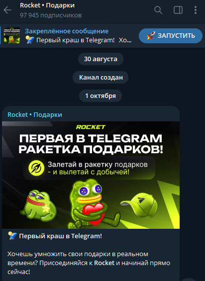 «Рокет Подарки» стартовал в Телеграме 30 августа 2025 года. Канал представляет себя как первую краш-игру для NFT-подарков в мессенджере. Мы взялись за разбор из-за странных деталей: взрывной рост аудитории, ноль отзывов, закрытые комментарии. В статье расскажем о механике сервиса, его реальных возможностях и тревожных сигналах.