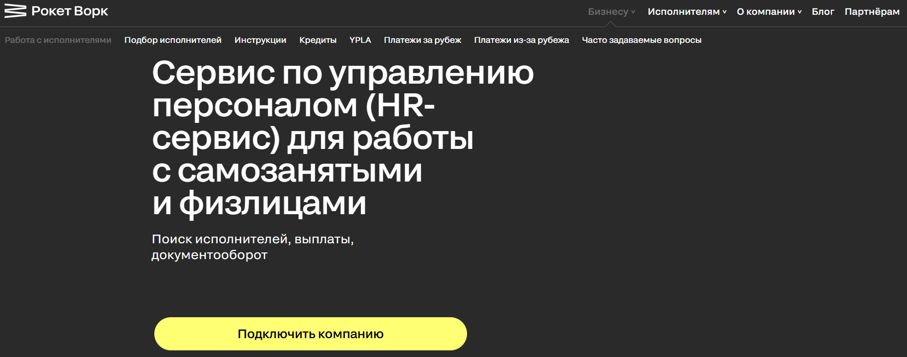 RocketWork – это IT-платформа для работы компаний с самозанятыми и фрилансерами. Сервис предоставляет инструменты для оформления документов. Есть возможность управления исполнителями и проведения выплат.