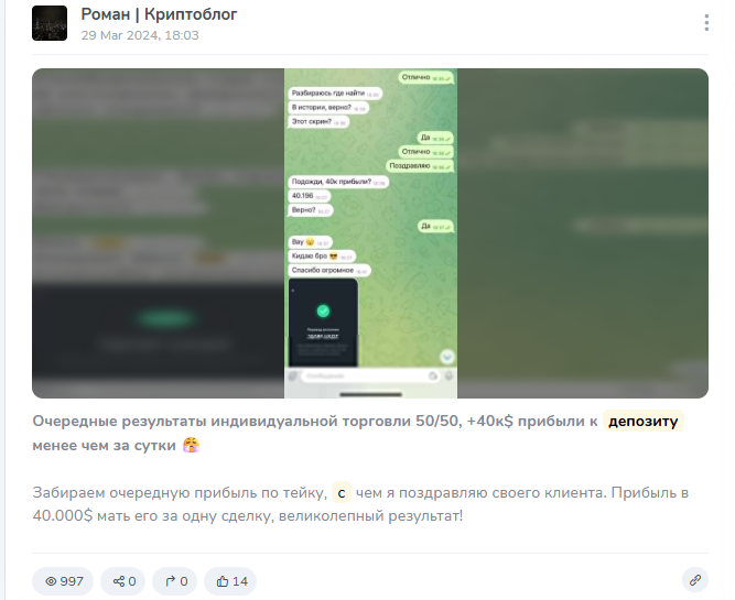 О канале Роман Криптоблог крайне мало упоминаний в сети, а комментарии отсутствуют. Это лишний раз может указывать на низкую популярность, вероятность накрутки аудитории и неправдоподобность рассказов о высоком заработке. Также не исключено, что проект мог сменить название.