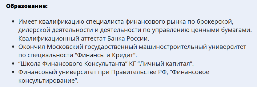 Пишут, что у Roman Bobrov есть квалификация специалиста финансового рынка, а также аттестат от ЦБ РФ. Он также окончил столичный машиностроительный ВУЗ по направлению «Финансы и Кредит», финансовый университет при Правительстве РФ.