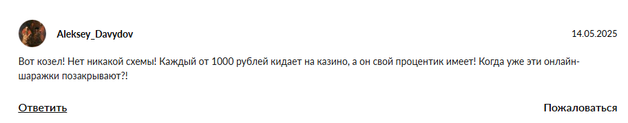 Как отмечают пользователи в отзывах, работа проекта связана с обманом. Роман завлекает пользователей на сайты онлайн-казино. Но при этом речь идет не просто о рефоводстве, а о завлечении на скам-площадки. Пользователи, рассчитывая на взлом, попадают в ловушку: в фейковом казино из них просто тянут деньги, но в итоге игроки так ничего и не получают.