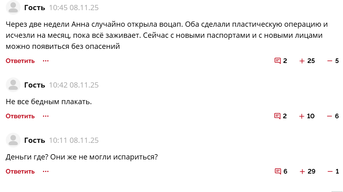 Циркулируют даже истории, что кидалово и лохотрон с крупными инвесторами действительно обернулись угрозами для семейства Новак, Анну какое-то время сопровождал телохранитель. Пара могла сделать пластику и поменять документы.