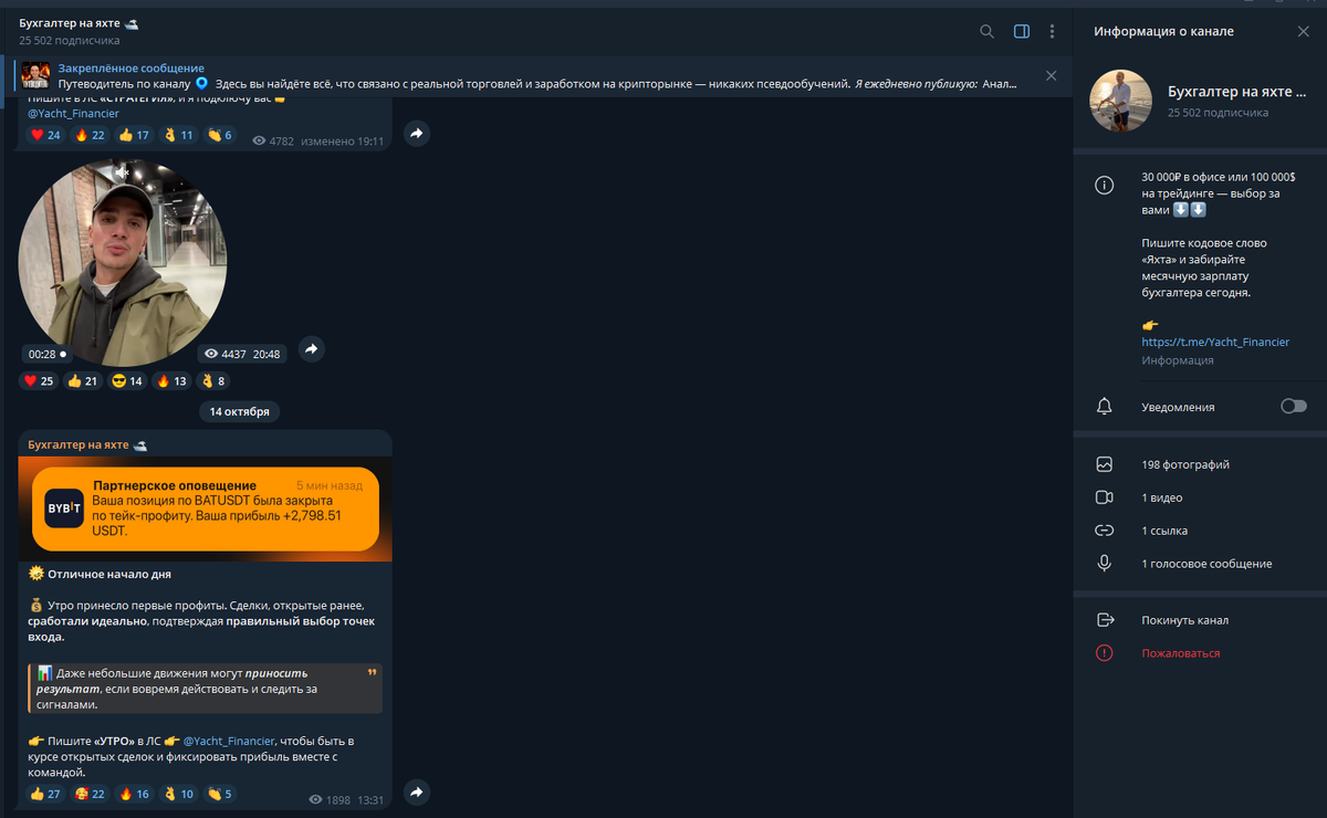 - последователь удаленного мошеннического канала «Бухгалтер на яхте»;