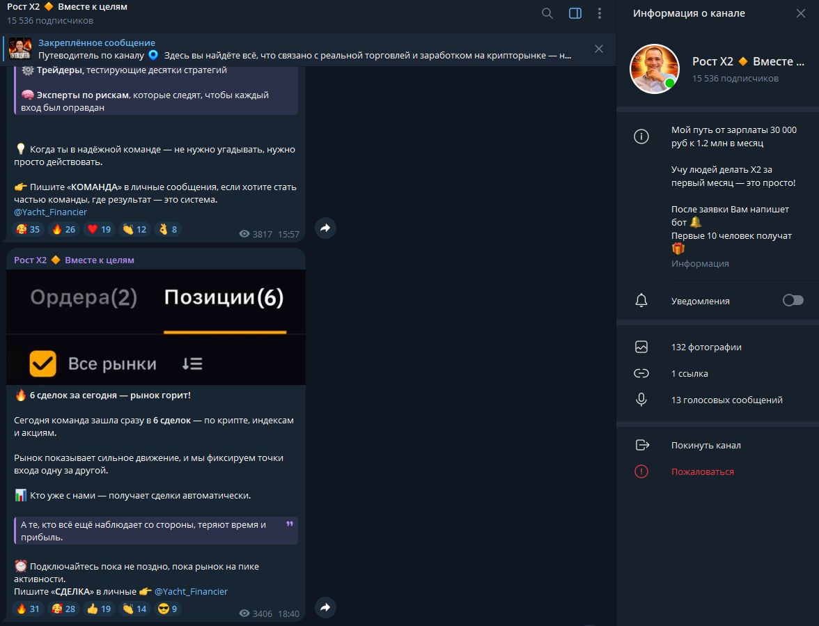 «Рост Х2 Вместе К Целям» — очередной «гений» трейдинга, обещающий удвоить вложения за месяц. Накрученные подписчики, закрытые комментарии и анонимный автор — классика жанра. Не ведитесь на этот цирк.