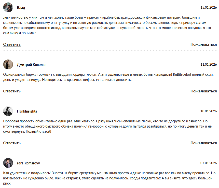 На очереди не менее важный аспект проверки ruBitruebot на скам — общественное мнение. Поэтому далее изучим независимые ресурсу в сети на предмет отношения крипто комьюнити к проекту.