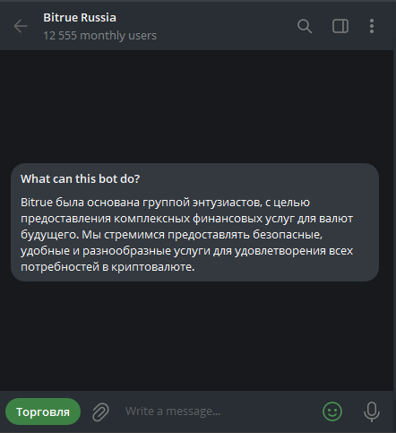 Бот Bitrue Russia Bot в Телеграмме: отзывы и оценка надежности сервиса ruBitruebot