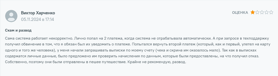 Есть в сети и отрицательные оценки работы ресурса. Люди отмечают некорректную работу системы, задержку платежей, молчание техподдержки, высокую комиссию.