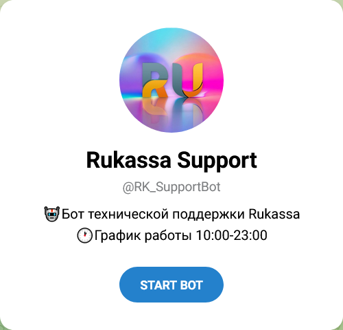 Техподдержка представлена ботом с ником @Rk_SupportBot, график работы с 10:00 до 23:00, вероятно, по часовому поясу Москвы.