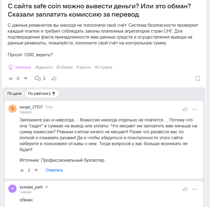 ООО Сейф Коин: отзывы, обзор проекта
