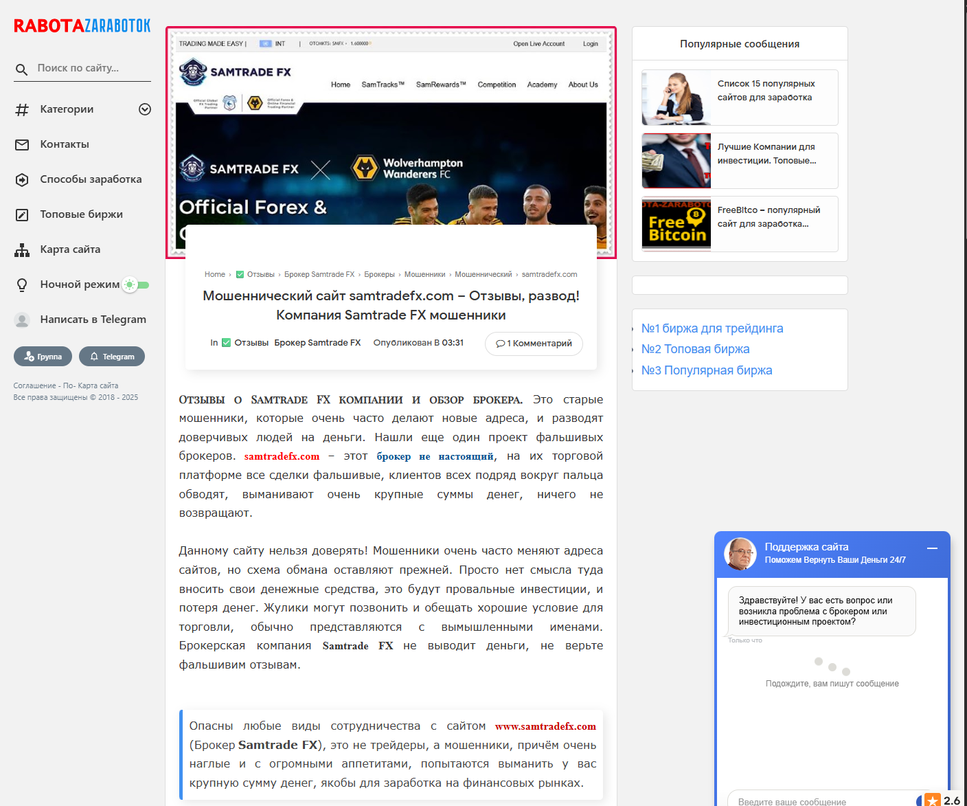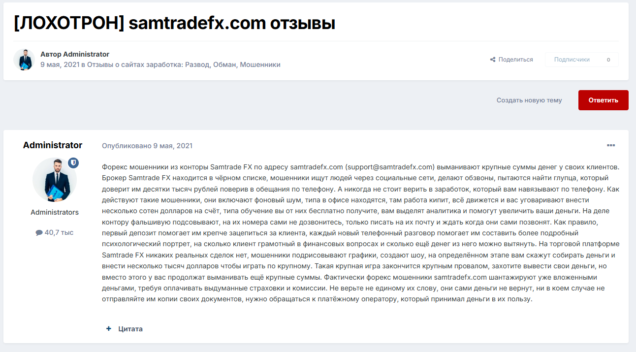 Sam Trade FX обещает легкий заработок, но на деле это очередной развод. Потерял деньги, а поддержки никакой. Не ведитесь на их уловки!