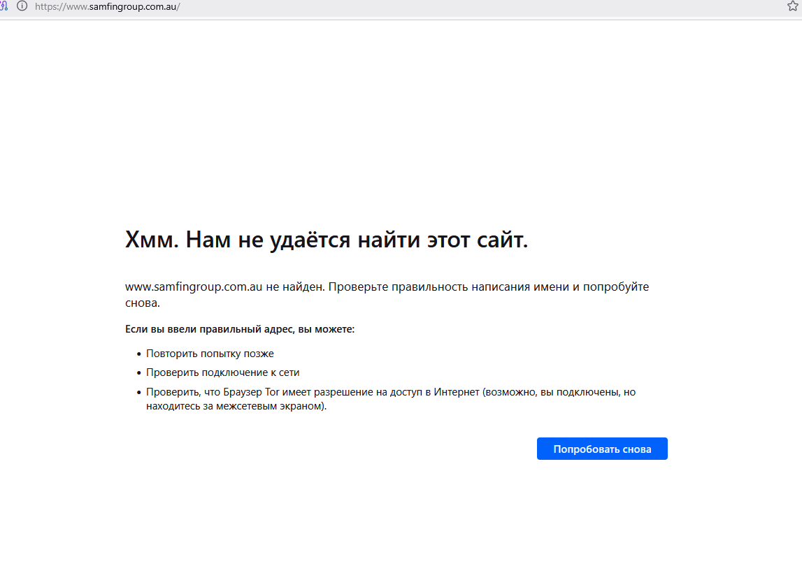Непонятно по какой причине до сих пор на сайте есть ссылка на австралийское представительство. Сам сайт недоступен: