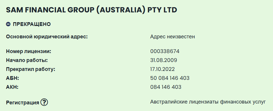 Sam Trade FX — очередной офшорный брокер, пытающийся выдать себя за надежную компанию. Лицензия от Сент-Винсента и Гренадин — это просто бумажка, не дающая никаких гарантий. Австралийскую лицензию у них отозвали еще в 2022 году после расследования незаконной деятельности. Торговые условия с плечом до 1:1000 и плавающими спредами без четких границ — прямой путь к сливу депозита. Отзывы пользователей сплошь негативные, а сайт наполнен недостоверной информацией. Связываться с такими «брокерами» — значит добровольно отдавать свои деньги мошенникам.