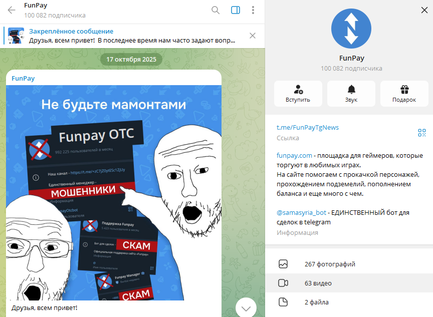 - Огромная аудитория в канале FunPayTgNews, подтверждающая доверие пользователей.