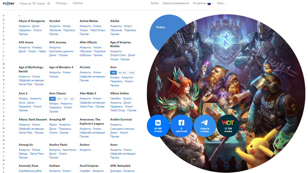 На сайте funpay com занимаются прокачкой персонажей, пополнением баланса, прохождением подземелий, помощью игрокам и еще много чем. Главная идея их бота – это удобство. Он позволяет купить или продать ценности в пару кликов, без перехода на официальный сайт.