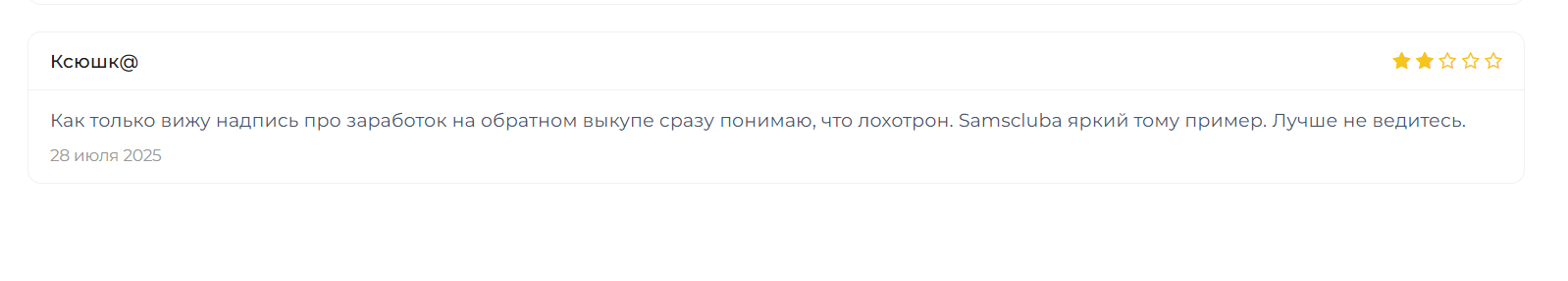 Sams club — проект, который заявляет о себе, как о “крупной инвестиционной компании с историей”, но отзывы о нем вызывают множество вопросов.