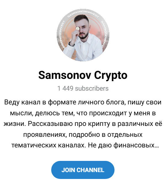 Самсонов Дмитрий Алексеевич инвестор – это автор в Telegram, который ведет свой канал о торговле различными активами. В первую очередь он заключает сделки с акциями, однако обращает внимание и на другие инструменты. Попытки найти чуть больше информации об эксперте оказываются неудачными, а сейчас еще и появились проблемы с доступом к сообществу. Тем не менее наша редакция собрала все имеющиеся сведения в сегодняшнем обзоре, чтобы объективно оценить деятельность трейдера.