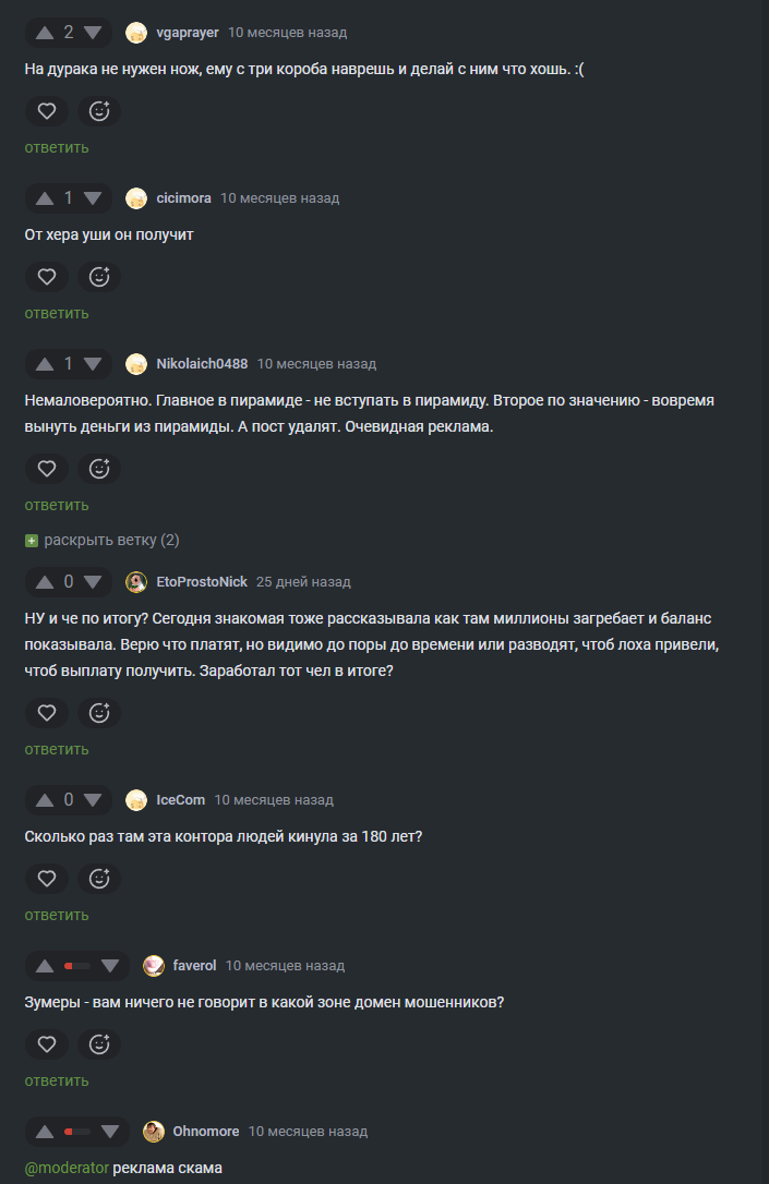 И правильно что проект называют пирамидой а что не так? Какое еще другое название можно дать проекту где все сводится к тому чтобы привести новых клиентов и те деньги что они принесут якобы будут распределяться по старым. Покажите мне хоть одного человека кто потом деньги хотя бы получил? Я лично ушел оттуда только с бесконечным спамом в телеграмме уже думал даже аккаунт сменить.