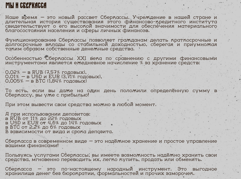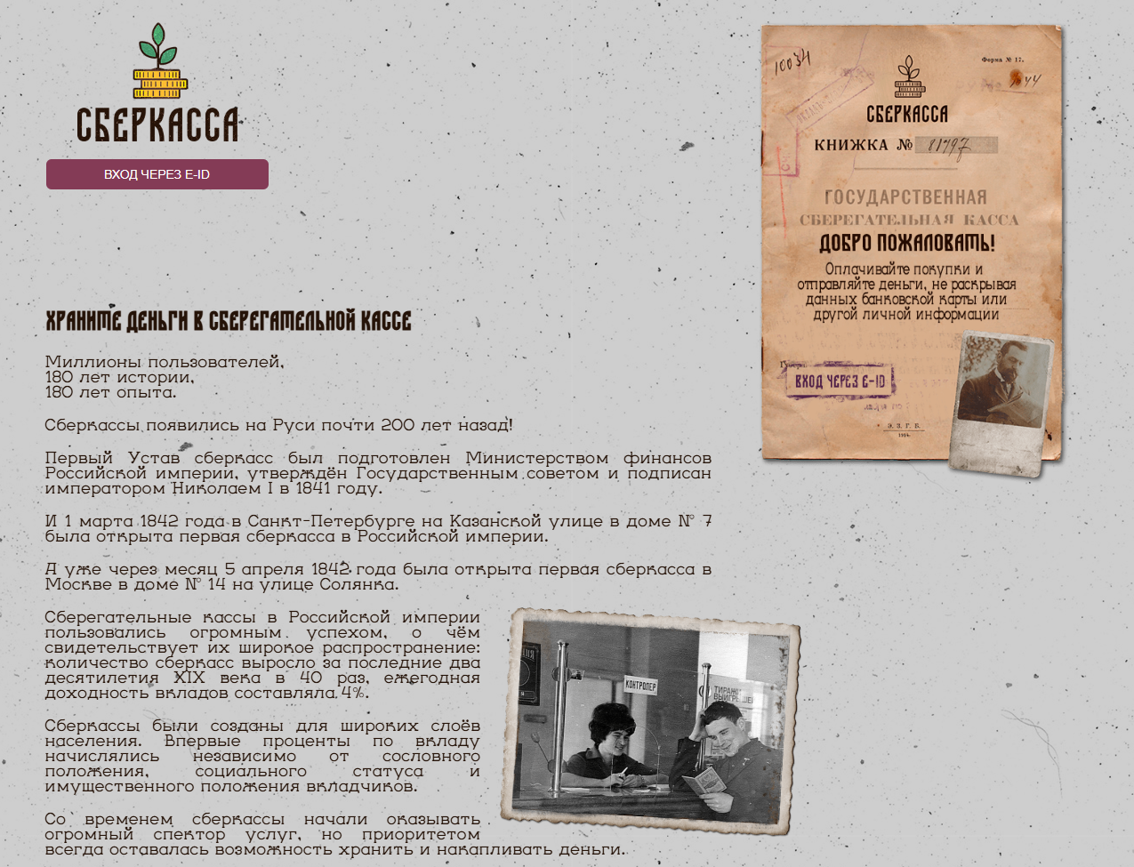 Там просто рассказывают о том, как зародились первые Сберкассы. После этого рассказывают об инвестиционных тарифах, которые представлены на сервисе.
