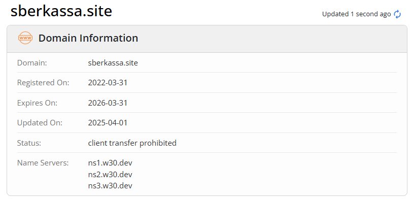 Домен сайта https sberkassa site exchange был зарегистрирован в 2022 году, однако обновление произошло в апреле 2025 года.