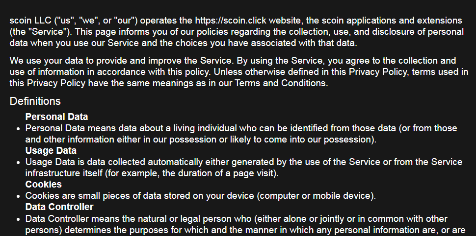 В правилах платформы была упомянута организация Scoin LLC — в сети о ней ничего не известно.