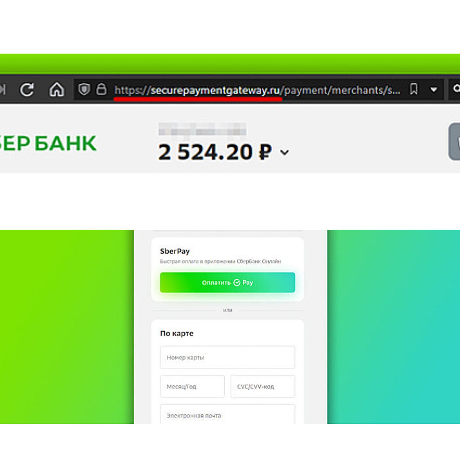 На момент написания статьи сайт уже не функционирует, как и многие его клоны. Из доступных сведений, переход на ресурс осуществлялся тогда, когда пользователь производил онлайн-оплату. Процедура ничем не отличалась от стандартной: нужно было ввести реквизиты карты, при необходимости контактные данные и подтвердить операцию. Тем не менее вместо домена Сбербанка клиенты видели securepaymentgateway ru.