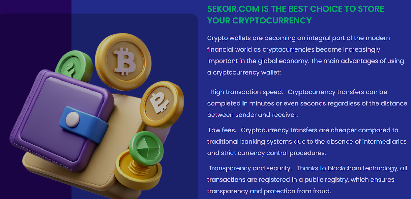 Sekoir com предлагает воспользоваться криптовалютным кошельком, который позволит обеспечить простой, оперативный и безопасный обмен электронных валют. Сервис соединяет продавцов и покупателей криптовалют удобным способом на выгодных условиях. В этой статье мы рассмотрим, можно ли доверять данному кошельку или это мошенническое приложение.